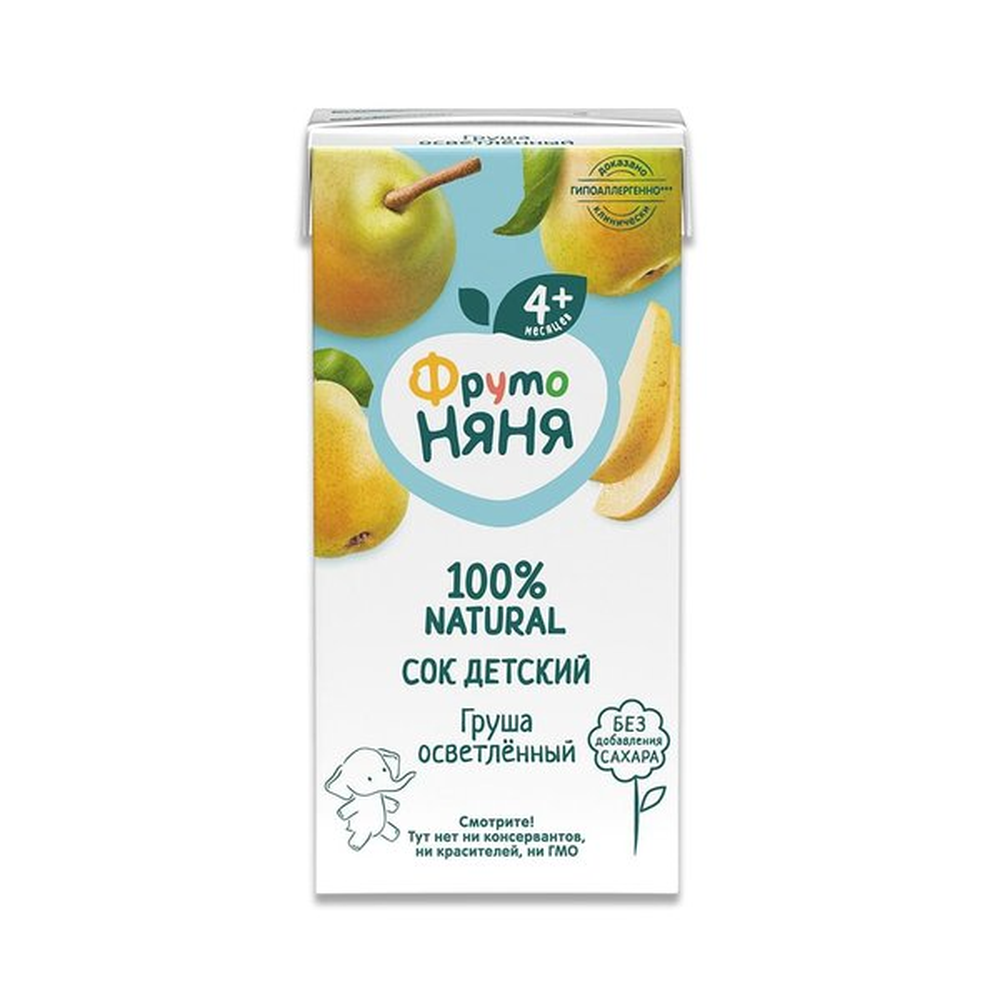 Сок Фруто Няня Груша Осветленный в упаковке 200 мл - это свежий и нежный напиток с натуральным вкусом спелых груш, без добавления осветлителей. Этот сок предоставляет природное удовольствие и освежение благодаря своему натуральному составу. Состав: сок груш, вода.