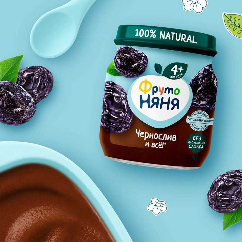 Пюре «Фруто Няня Чернослив натуральное» в стеклянной банке объемом 100 г амм - это вкусное и полезное детское питание, приготовленное из натуральных черносливов. Состав продукта не содержит искусственных ингредиентов, и он предоставляет детям важные питательные вещества.