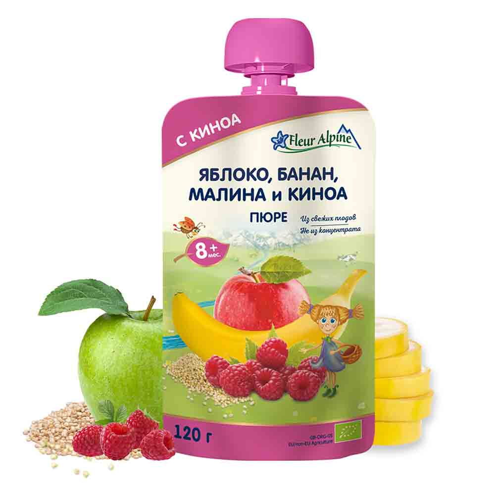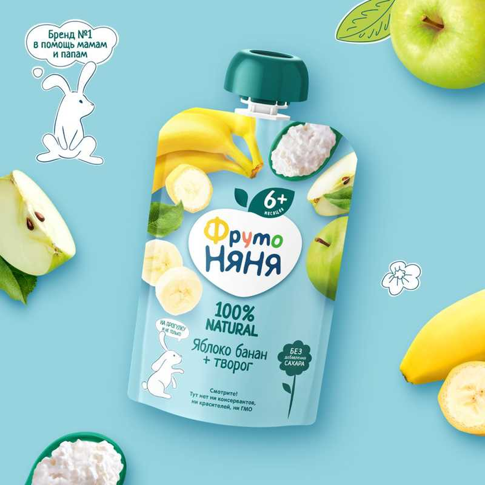 Яблоки и бананы содержат много пектиновых веществ, что оказывает благоприятное влияние на работу кишечника малыша. калий, содержащийся в бананах, регулирует водный баланс, влияет на общий тонус и оказывает существенное влияние на сердечную деятельность. Мягкая упаковка этого пюре удобна и практична: его можно взять с собой на прогулку или в поездку, оно не разольется, а упаковка не разобьется, и это прекрасный способ приучить ребенка есть самостоятельно, развивая моторику рук.