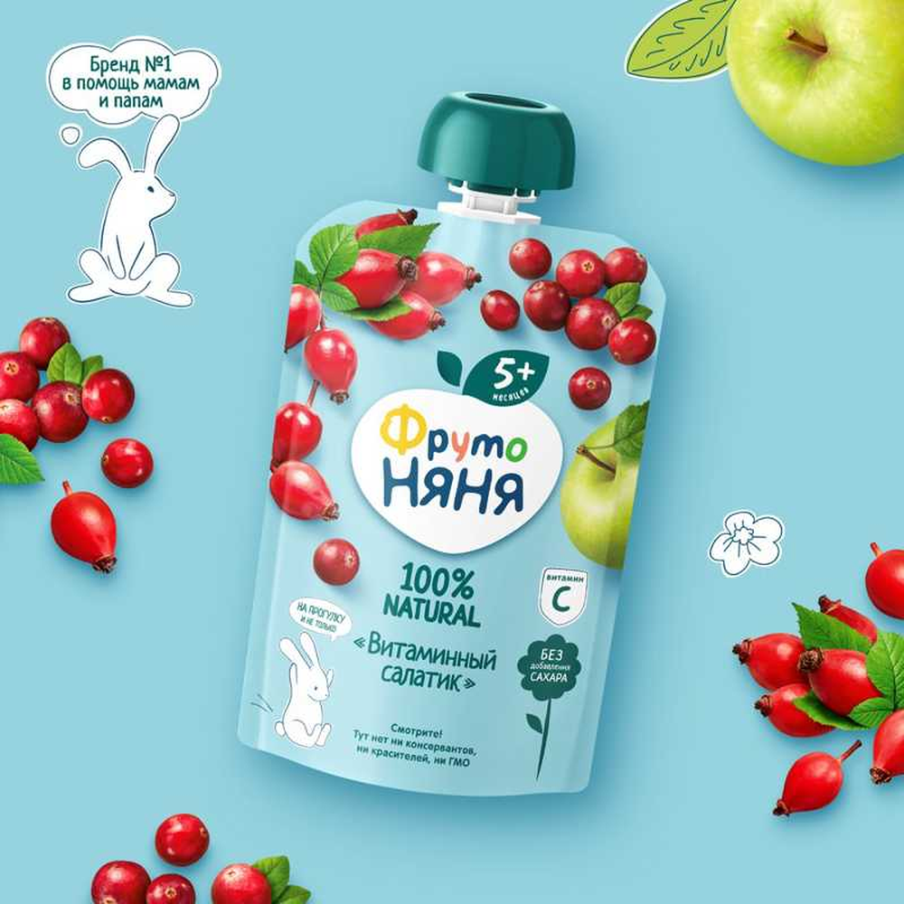 Яблоко - кладовая витаминов и минералов, оно также стимулирует выработку пищеварительных элементов и повышает аппетит. клубника насыщена фолиевой кислотой, которая укрепляет стенки сосудов и иммунную систему. и яблоко, и клубника богаты аскорбиновой кислотой, способствующей укреплению иммунитета, нормальному развитию кровеносных сосудов, костей, зубов и лучшему усвоению железа. мягкая упаковка этого пюре удобна и практична: его можно взять с собой на прогулку или в поездку, оно не разольется, а