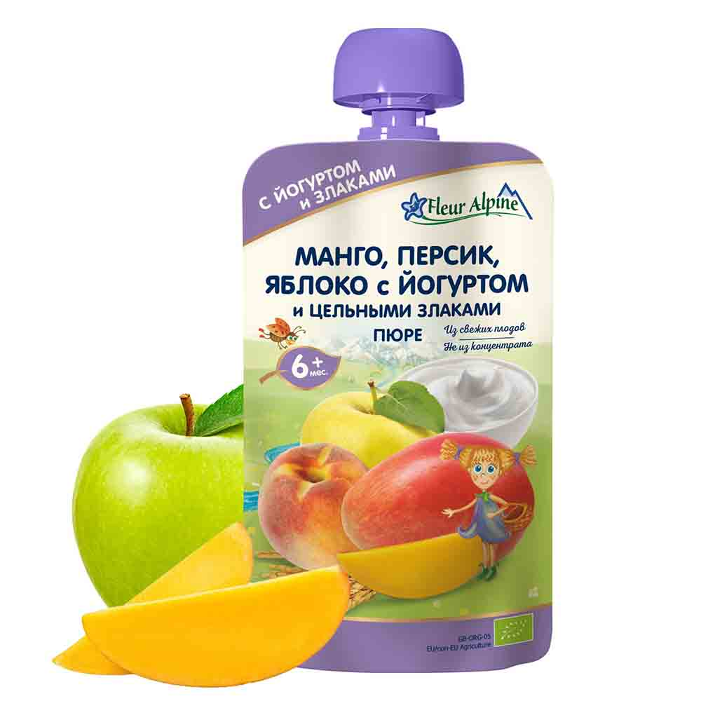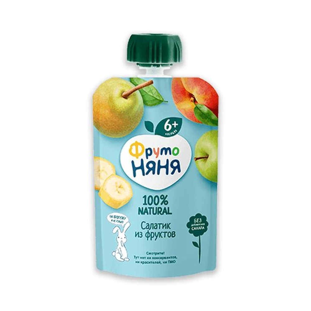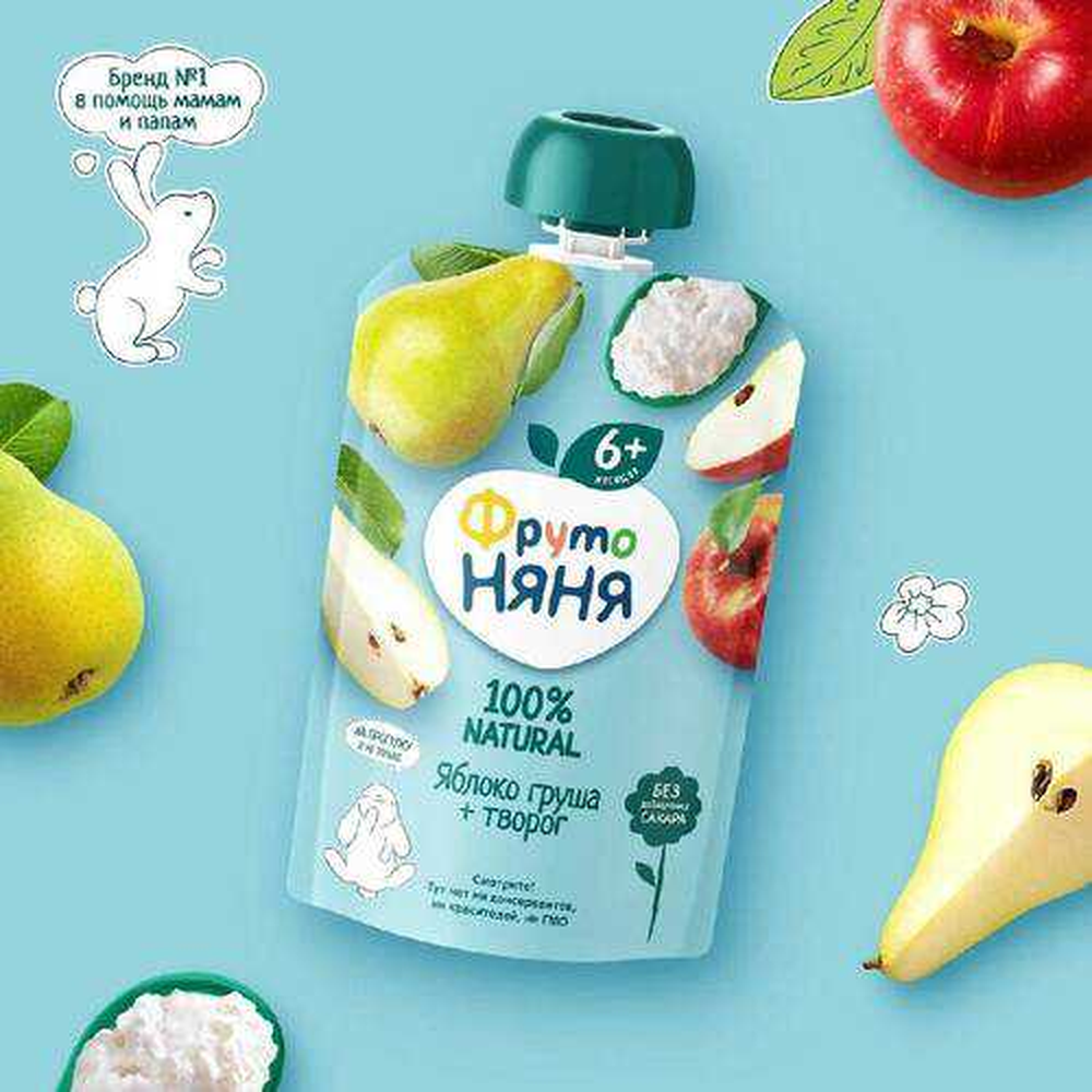 Пюре «Фруто Няня Яблоко/груша/банан/персик йогурт» в удобной пауч-упаковке объемом 90 г амм - это вкусное и питательное детское питание, сочетающее в себе нежный вкус яблока, сочных груш, сладких бананов и ароматного персика, приправленных нежным йогуртом. Состав продукта включает натуральные ингредиенты, без добавления искусственных ароматизаторов и консервантов, обогащая маленьких гурманов витаминами и минералами.