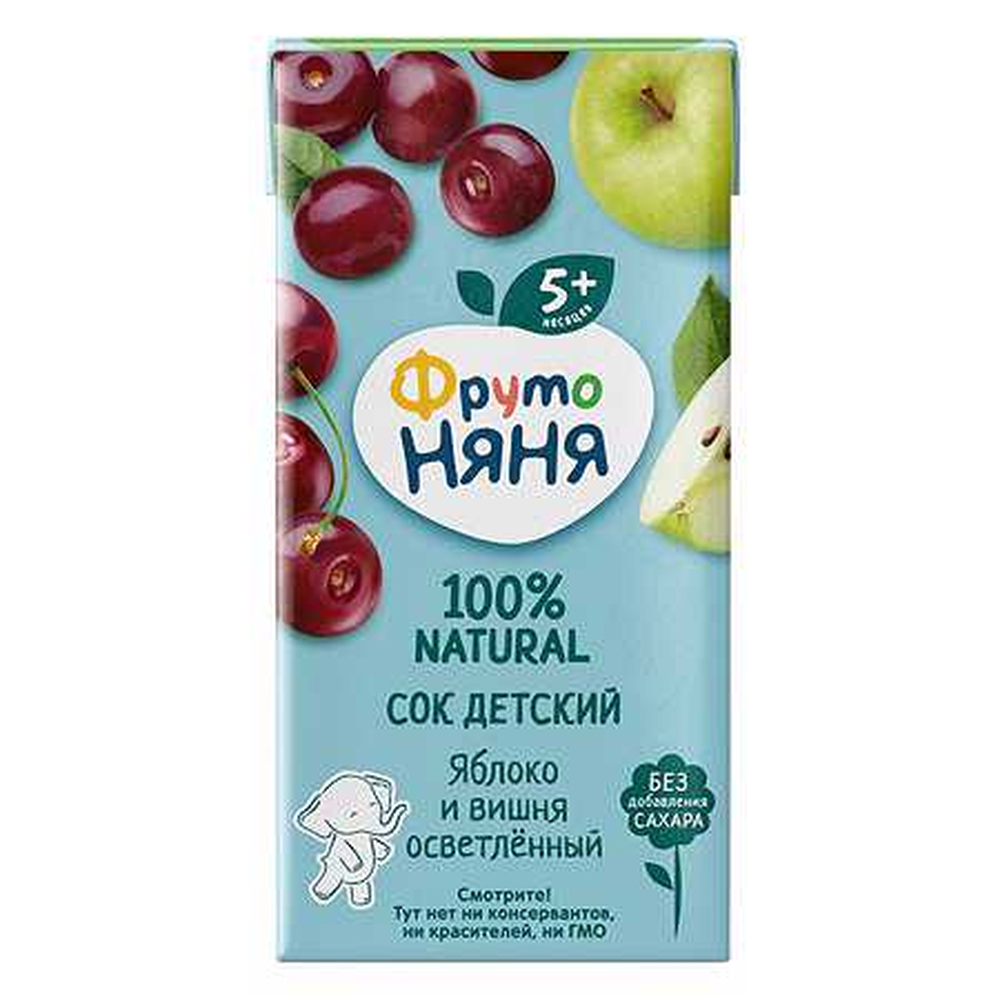 Сок Фруто Няня Яблоко/Вишня Осветленный в упаковке 200 мл - это сочетание сладкого яблока и кислой вишни, без использования осветлителей. Этот натуральный сок идеально подходит для тех, кто ищет сочное и вкусное напиток в компактной упаковке. Состав: сок яблочный, сок вишни, вода.