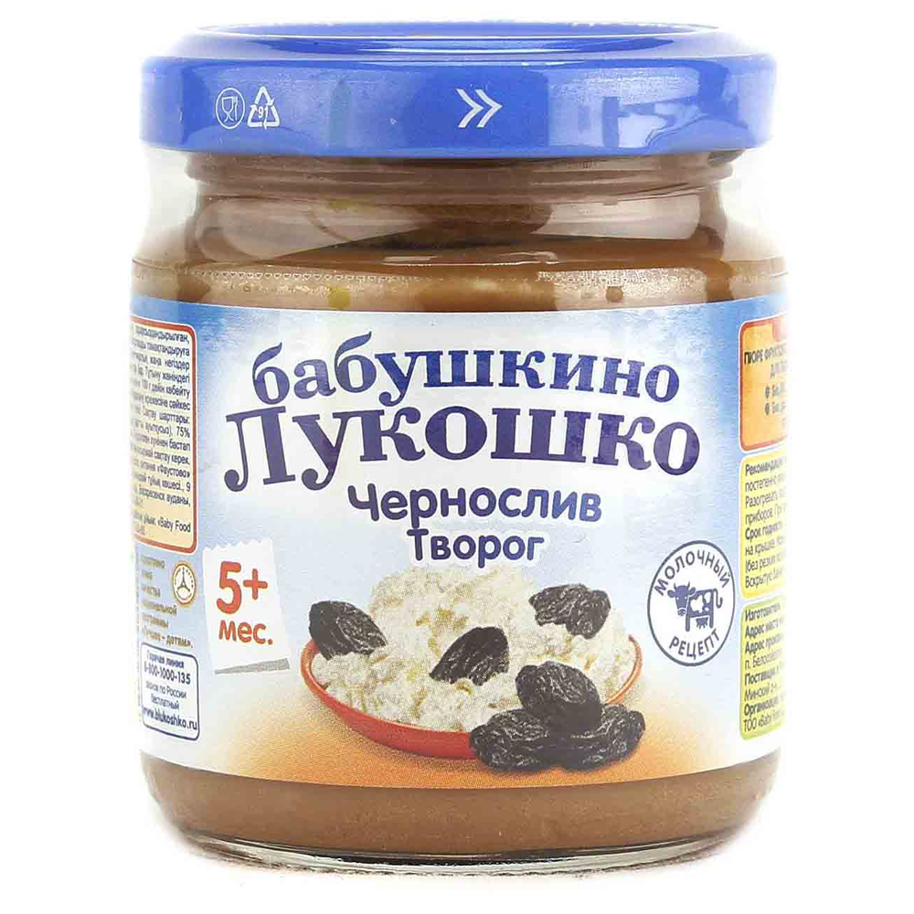 Пюре «Бабушкино ЛукоШко» из чернослива с творогом в стеклянной банке объемом 100 г амм - это полезное и вкусное детское питание, способствующее здоровому росту и развитию малышей. Без добавления сахара, оно содержит натуральные черносливы и творог, обогащенные витаминами и минералами. Состав: черносливы, творог.