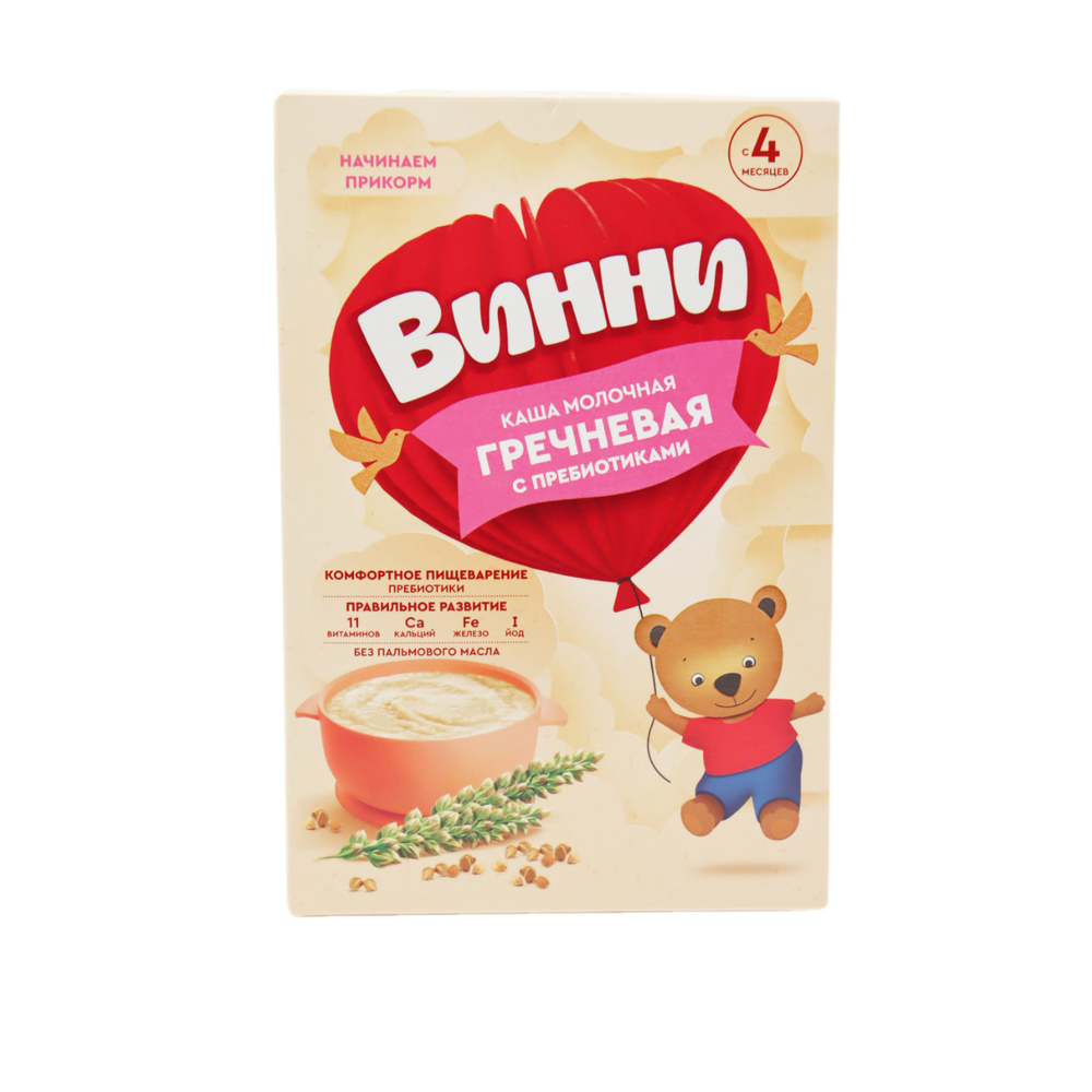 Каша «Винни» гречневая - это питательное и вкусное детское блюдо, упакованное в порционные пакетики по 200 г амм. Она содержит гречку и подходит для малышей с разных возрастов. Эта каша обогащена витаминами и минеральными веществами, что делает ее полезным выбором для детского завтрака.