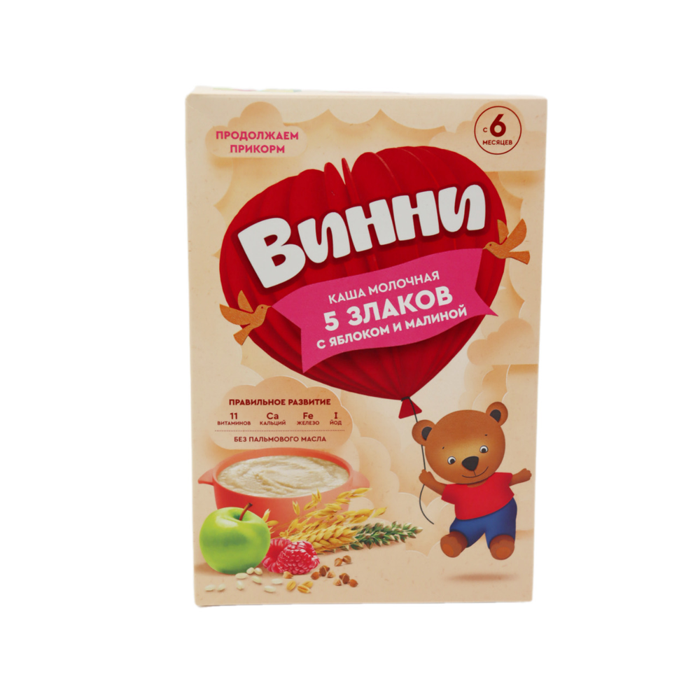 Каши из нескольких круп подходят для расширения рациона малыша старше 6 месяцев. Молочная каша 5 злаков с яблоком и малиной – это хорошая возможность для малыша познакомиться с новыми вкусовыми сочетаниями: злаки и фрукты в одной тарелке. Сбалансированный состав