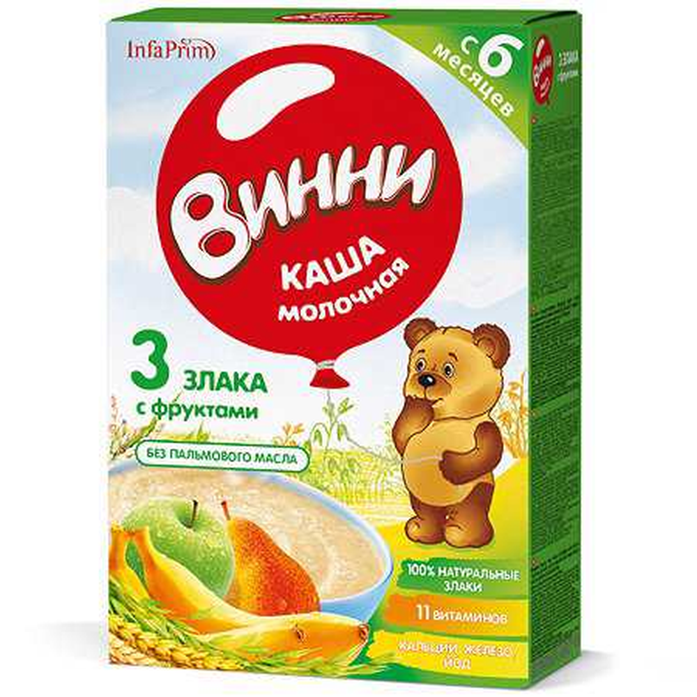 Каши из нескольких круп подходят для расширения рациона малыша старше 6 месяцев. Молочная каша 3 злака с фруктами – это хорошая возможность познакомить малыша с новыми вкусами. Сбалансированный состав