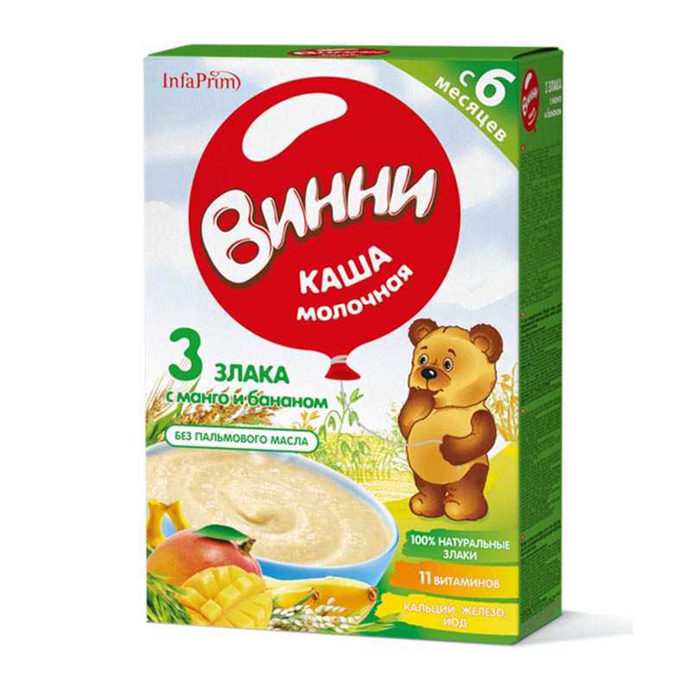 Каши из нескольких круп подходят для расширения рациона малыша старше 6 месяцев. Молочная каша 3 злака с манго и бананом – это хорошая возможность познакомить малыша с новыми вкусами. Сбалансированный состав
