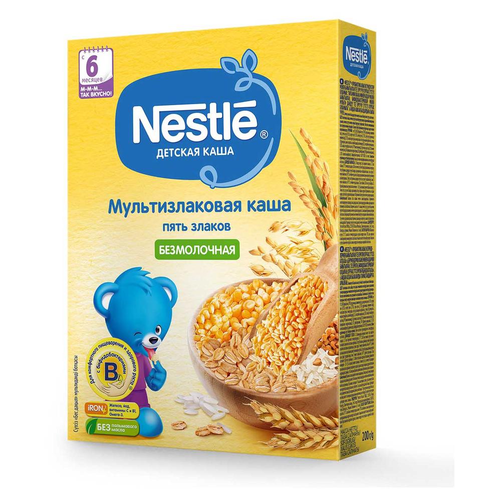 Nestle каша безмолочная мульти злаковая 5 злаков, с 6 месяцев, 200 г -4% безмолочная каша 5 злаков приготовлена с использованием особой технологии бережного расщепления злаков che. Благодаря этому в продукте появляется естественный сладкий вкус, каша лучше усваивается и имеет повышенную пищевую ценность. 5 злаков (пшеница, греча, рис, овес и кукуруза) дополняют друг друга, обеспечивая ребенка питательными веществами. Каша является полезным сбалансированным прикормом для здоровых детей и отлично