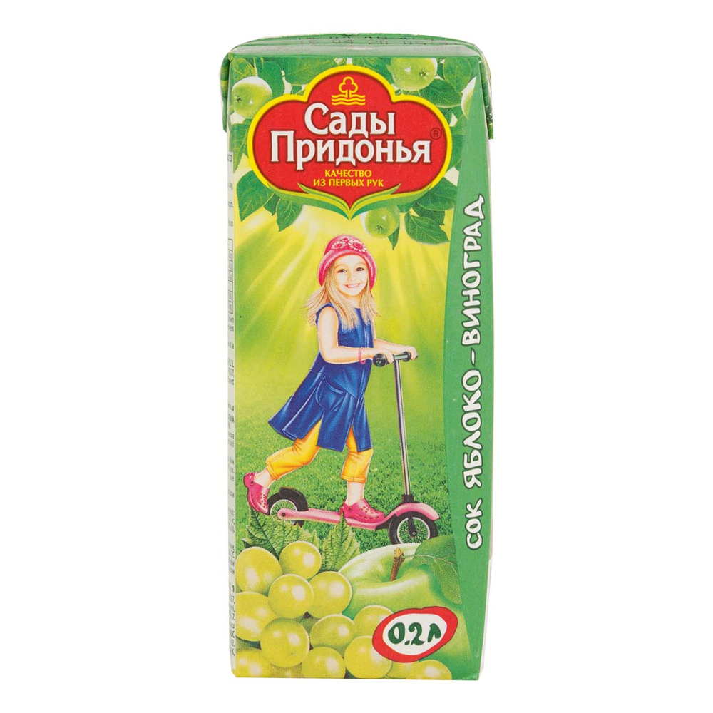 Яблочно-виноградный сок «Сады Придонья» объемом 0,2 л итра - также восстановленный сок, осветленный для придания светлого цвета. Этот сок имеет яркий вкус яблок и виноградов, сочетая в себе сладость и свежесть обоих фруктов. Без добавления сахара и консервантов, он идеально подходит для тех, кто ценит натуральные вкусы.