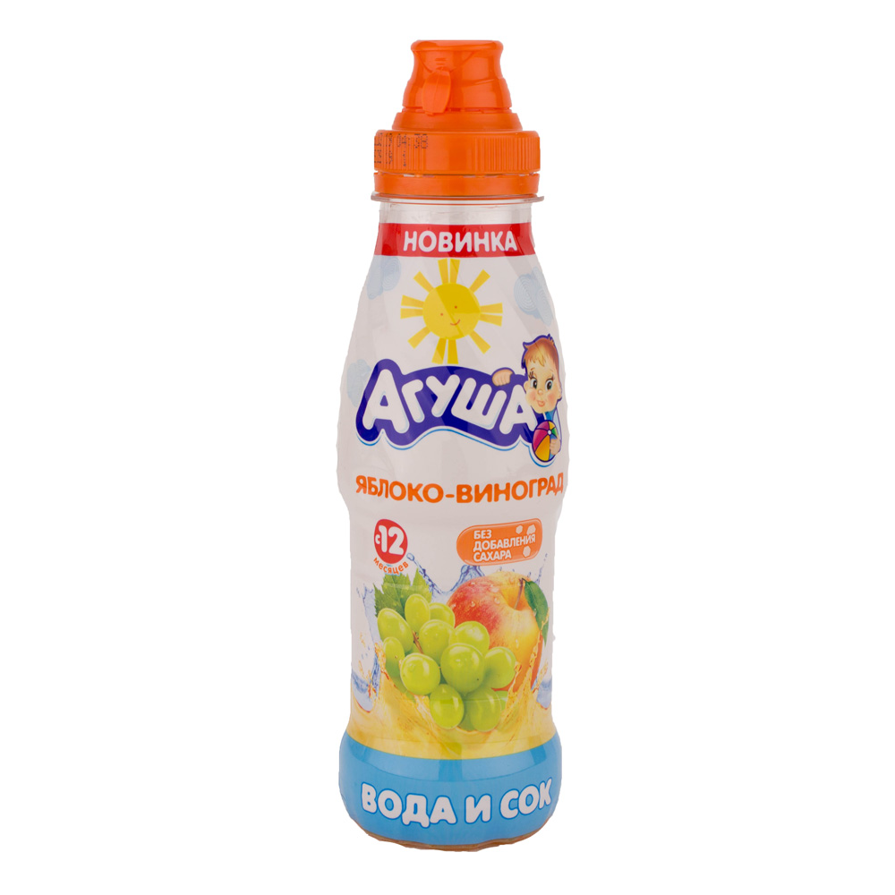 Напиток агуша «вода и сок» яблоко и виноград с 12 месяцев 300 мл Напиток состоит из двух компонентов: сока и воды. Отлично подойдет для утоления жажды в жаркую погоду.