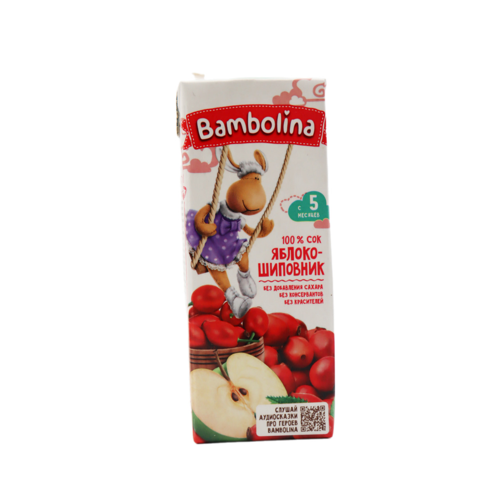 Сок Bambolina из яблока и шиповника в упаковке объемом 200 мл - это натуральный и освежающий напиток, богатый витаминами и полезными веществами. Яблочный вкус с нотками шиповника создает гармоничное сочетание сладости и кислинки. Этот сок идеально подходит для утреннего завтрака или перекуса, обеспечивая организм необходимой энергией и витаминами.