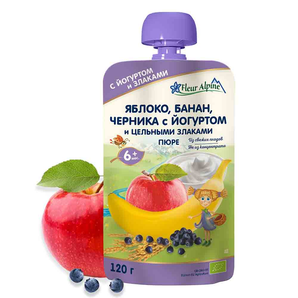 Пюре из яблок и черники. Для питания детей раннего возраста старше 5-ти месяцев. пюре фруктовое гомогенизированное стерилизованное. Без гми, красителей, ароматизаторов и консервантов. без сахара.