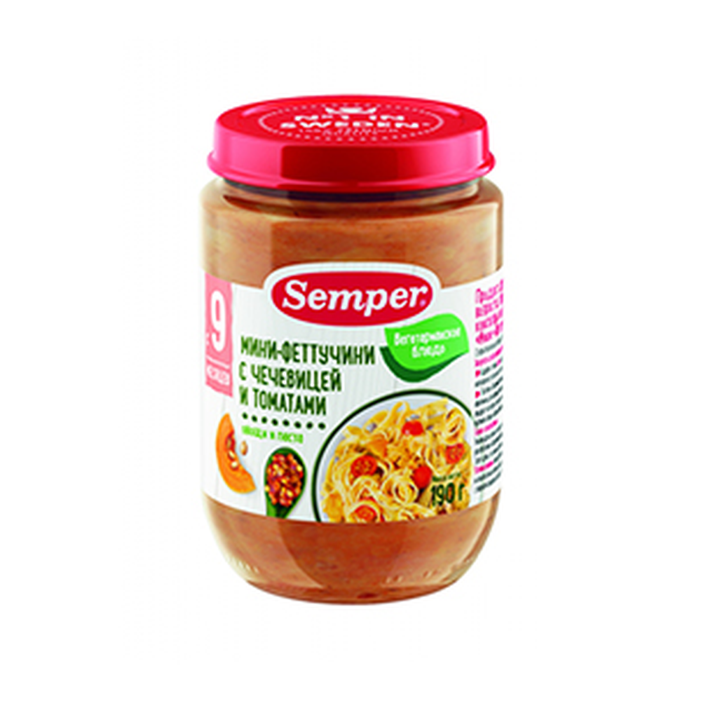 Semper Пюре Мини-Феттучини С Чечевицей И Томатам 190ГР Стекло: Пюре Semper с мини-феттучини, чечевицей и томатами - это питательное и вкусное блюдо в стеклянном контейнере объемом 190 г аммов. Оно создано из натуральных ингредиентов и предоставляет разнообразное питание для малышей. Пюре подходит для детей и способствует их здоровому развитию.