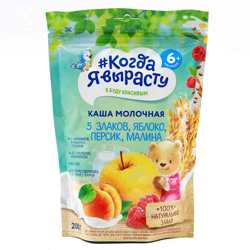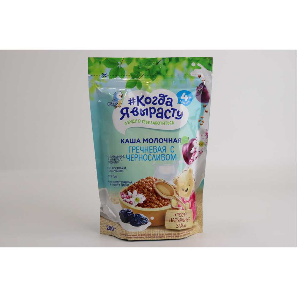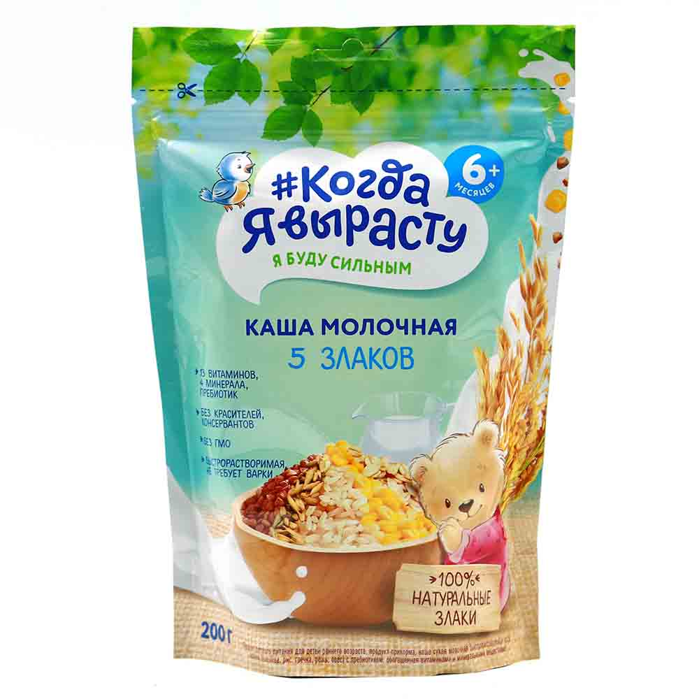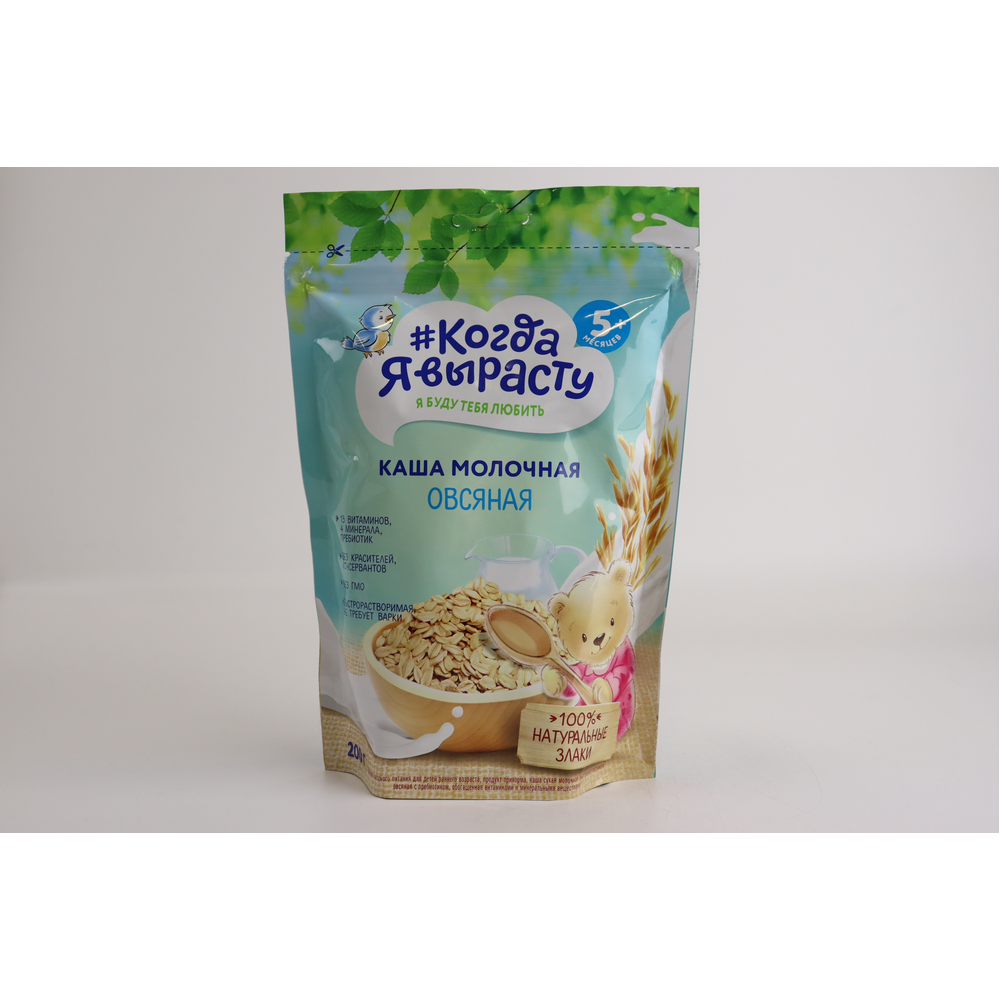 Каша «Когда я вырасту Овсян D13:J15» подходит для детей с 5 месяцев и старше. Упакована в удобные порционные пакетики по 200 г амм и содержит овсянку. С добавлением молока, она обеспечивает растущий организм полезными элементами питания и легко приготавливается.