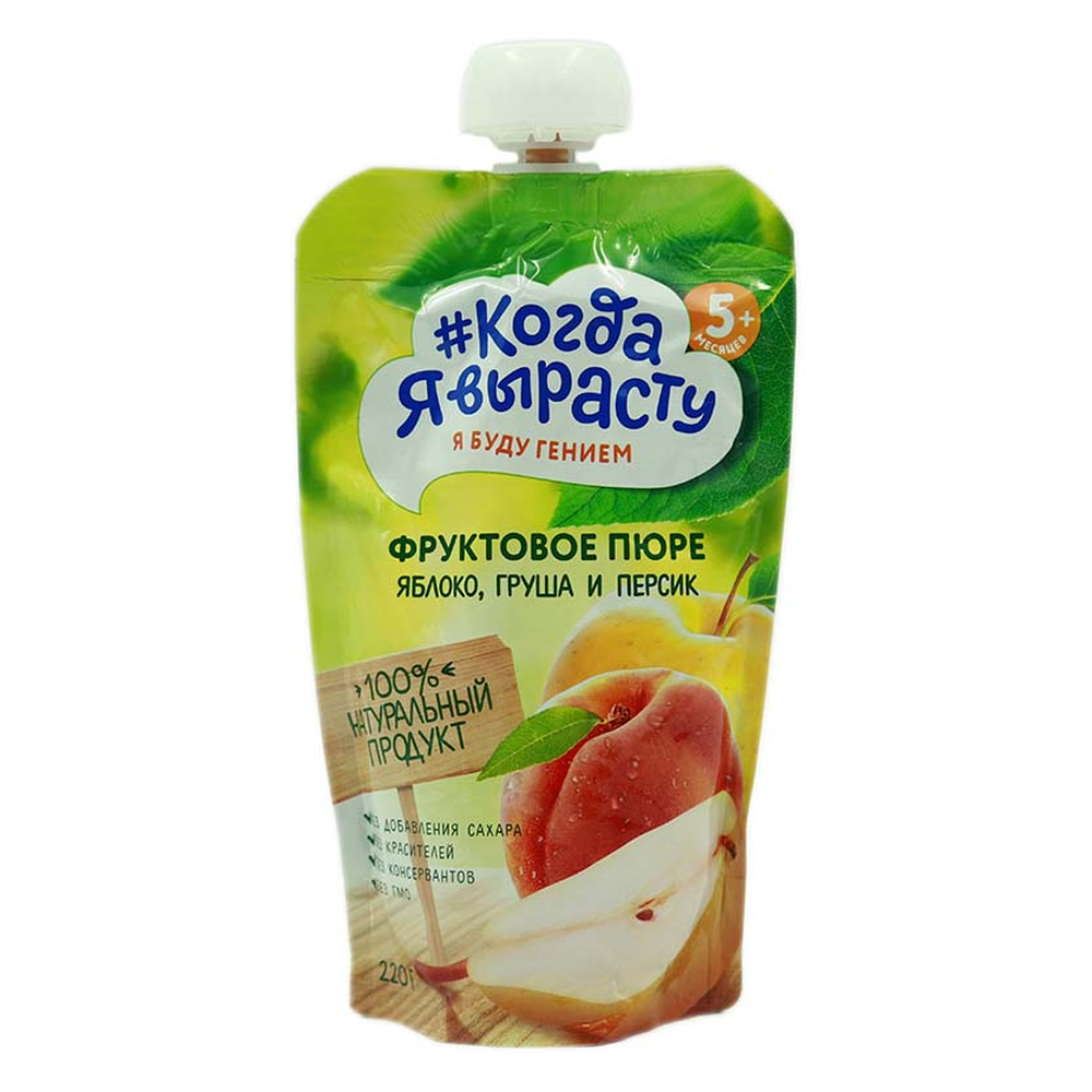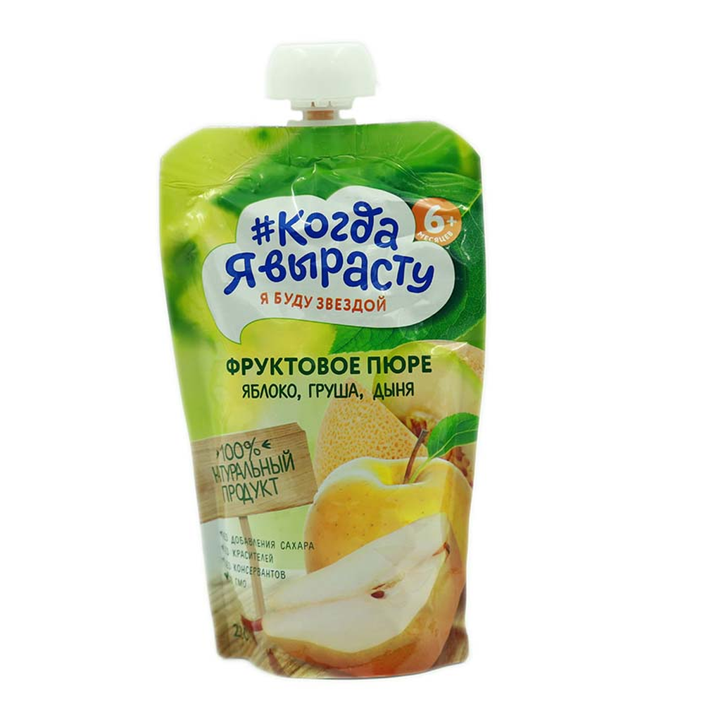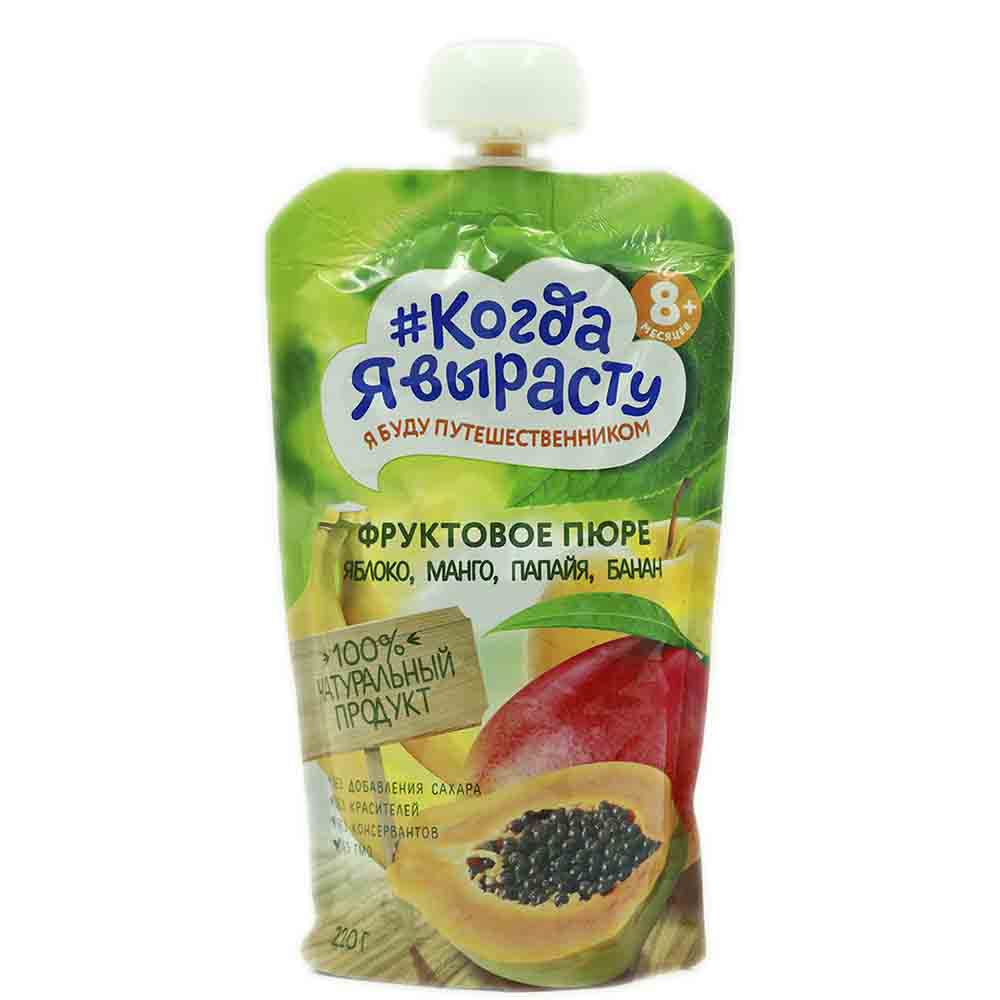 Пюре «Когда я вырасту» является идеальным выбором для детей от 7 месяцев. Оно содержит натуральные ингредиенты, такие как яблоки, манго, папайя и бананы, которые бережно обработаны, чтобы сохранить все полезные свойства фруктов. Каждый паучок содержит 220 г аммов пюре, которое легко и удобно подходит для кормления малышей. Состав продукта: яблоки, манго, папайя, бананы.