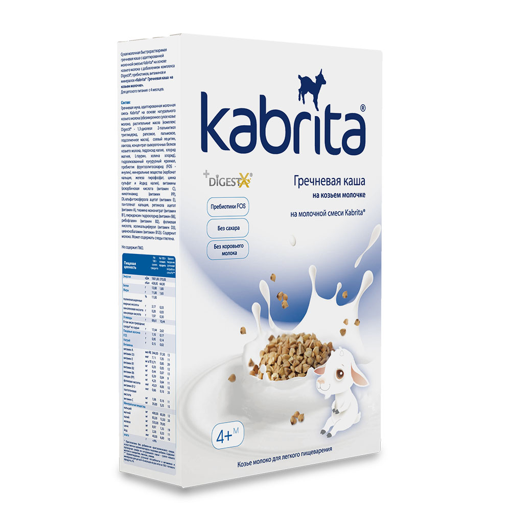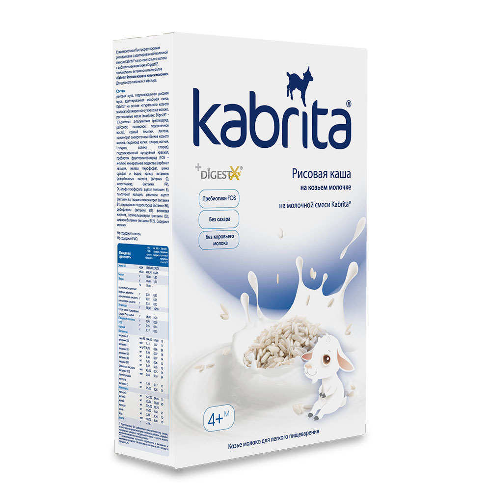 для детей с 4 месяцев, 180 г Нежная и воздушная рисовая каша на основе адаптированной смеси Kabrita идеальна для бережного перехода к злаковому прикорму и сбалансированного питания малыша первого года жизни. Приятный сливочный вкус каш Kabrita достигается исключительно за счет натурального молочного сахара – лактозы, без добавления подсластителей. Легко усваивается и хорошо перевар