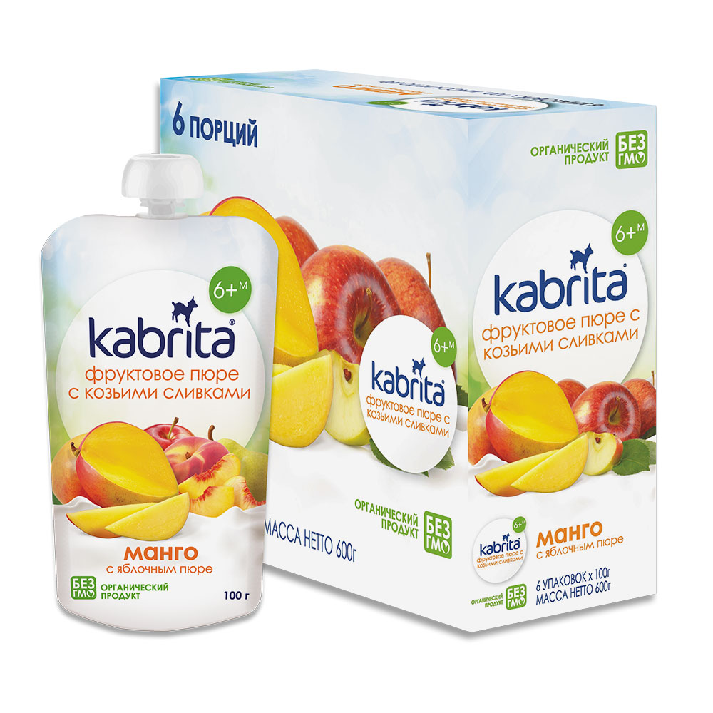 «Манго с яблочным пюре», с 6 месяцев, 100 г Вкусное спелое манго и сладкое яблоко в сочетании с нежными сливками козьего молока круглый год. Изысканный и вкусный десерт из органических фруктов. Идеальное решение для прогулок и перекуса как для малышей, так и для детей более старшего возраста. Удобная и опрятная мягкая упаковка способствует развитию мелкой моторики малыша и навыков самостоятельности. Не требует хранения в холодильнике. Для де