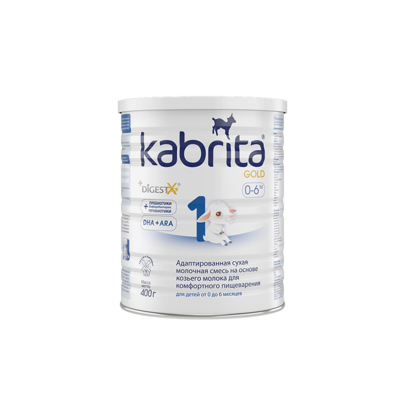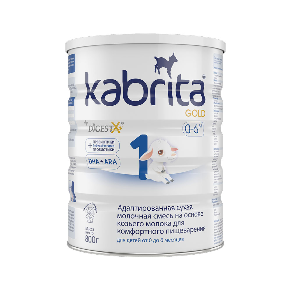 Kabrita 1 Gold – адаптированная сухая молочная смесь приготовлена из натурального полезного козьего молока. Козье молоко и продукты на его основе хорошо усваиваются и переносятся. Это способствует более комфортному пищеварению ребенка. Смеси Kabrita – сбалансированное, полноценное и бережное питание с рождения. DigestX – комплекс жиров с бета-пальмитатом, подобный жировому профилю грудного молока, способствует снижению вероятности запоров, лучшему энергообмену и усвоению кальция. Пребиотики и П