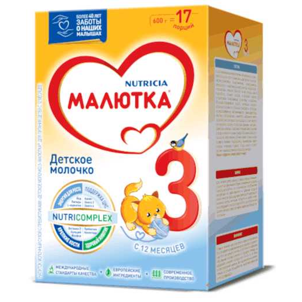 Смесь молочная Малютка 3 в упаковке весом 600 г аммов предназначена для детей старше 12 месяцев. Этот продукт специально адаптирован, чтобы обеспечить здоровое рост и развитие младенцев, а также содержит пребиотики для поддержания здоровой микрофлоры желудочно-кишечного тракта.
