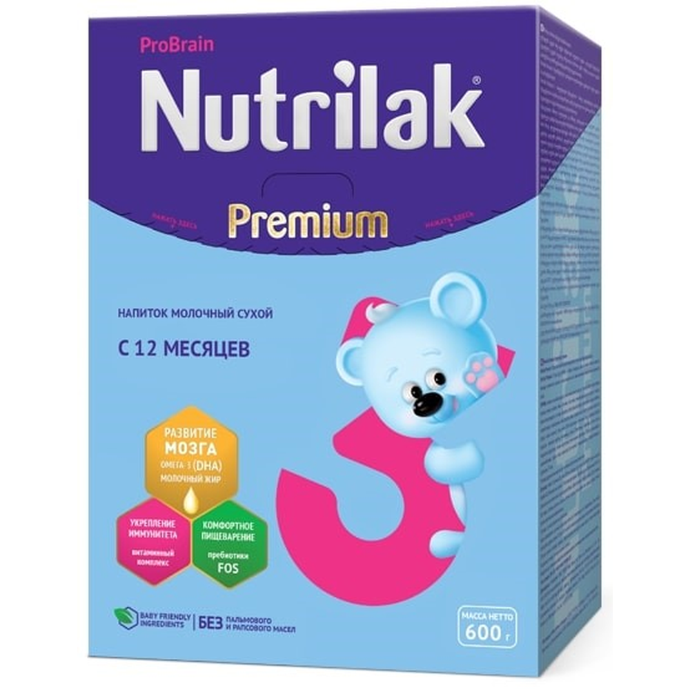 Nutrilak Premium предлагает удобный и выгодный формат упаковки 600 г ProBrain - с омега-3 (Dha) и молочным жиром для полноценного развития мозга