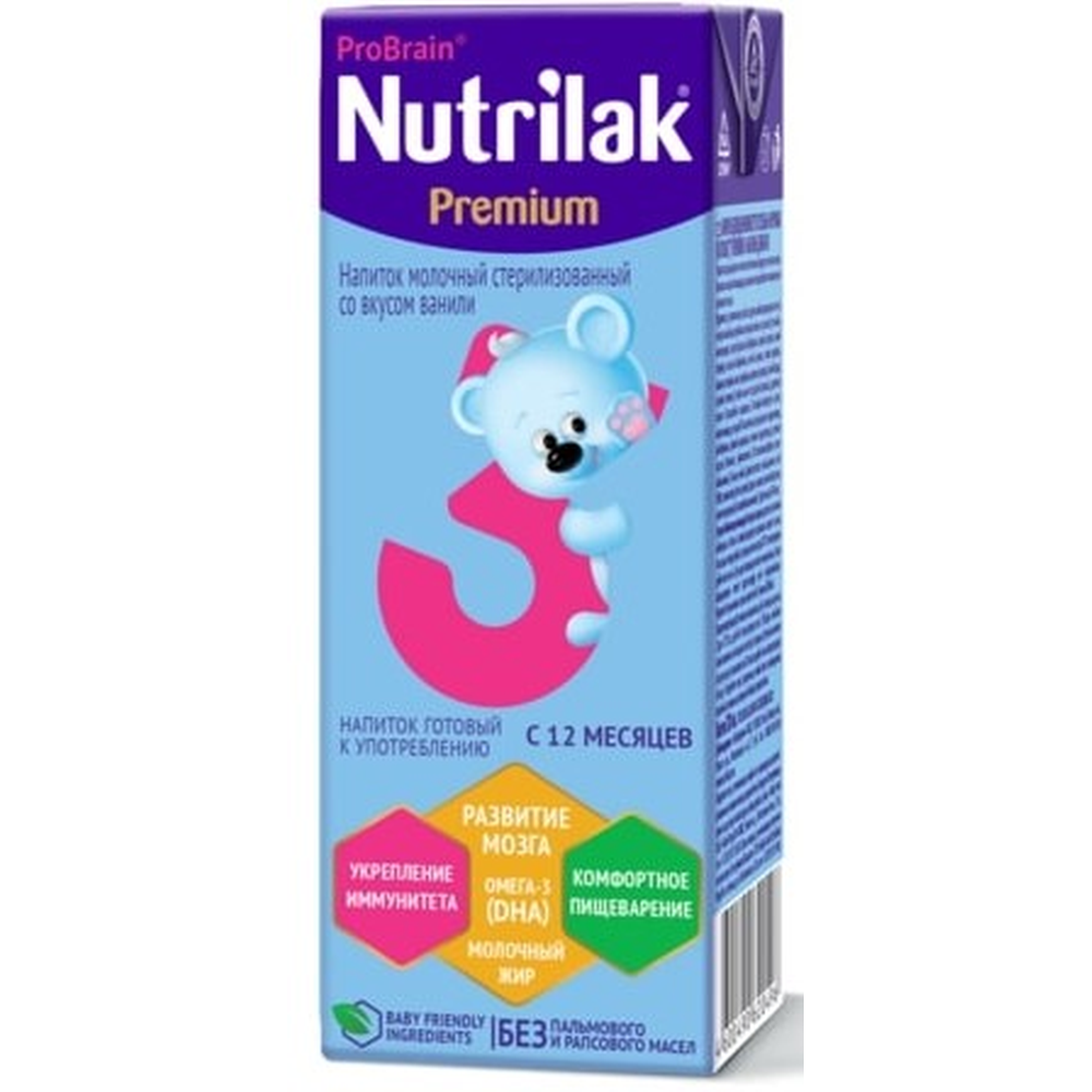 Готовый к употреблению детский молочный напиток, со вкусом ванили, для питания детей старше одного года. Готово к употреблению – без смешивания, без добавления воды. Удобно использовать – днем и ночью, дома и в дороге. Безопасная асептическая упаковка – сохраняет полезные свойства, защищает от бактерий. Уникальный сбалансированный жировой состав