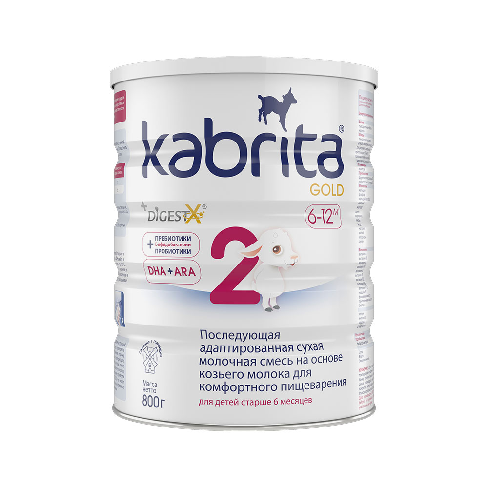 Kabrita 2 Gold – последующая адаптированная сухая молочная смесь приготовлена из натурального полезного козьего молока. Козье молоко и продукты на его основе хорошо усваиваются и переносятся. Это способствует более комфортному пищеварению ребенка. Смеси Kabrita – сбалансированное, полноценное и бережное питание детей первого года жизни. DigestX – комплекс жиров с бета-пальмитатом, подобный жировому профилю грудного молока, способствует снижению вероятности запоров, лучшему энергообмену и усво