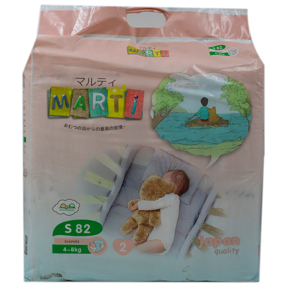 Подгузники Marti предназначены для детей весом от 4 до 8 кг Они имеют размер S и в упаковке содержится 80 штук. Подгузники изготовлены из качественных материалов, обеспечивающих комфорт и защиту кожи ребенка.