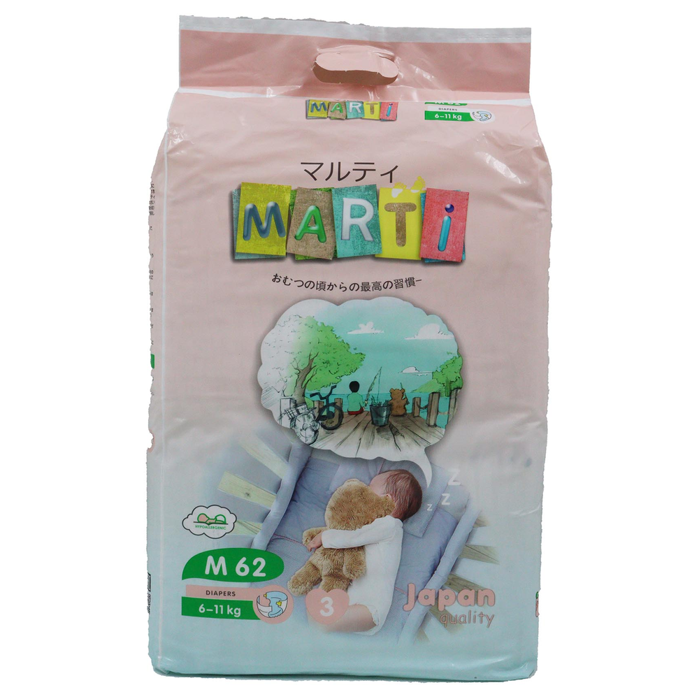 Подгузники Marti предназначены для детей весом от 6 до 11 кг В упаковке содержится 62 штуки подгузников. Они изготовлены из качественных материалов, обеспечивающих комфорт и защиту кожи ребенка.
