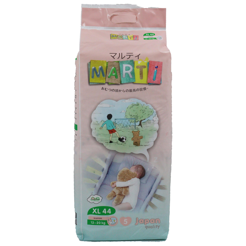 Подгузники Marti XL предназначены для детей весом от 12 до 20 кг В упаковке содержится 44 штуки. Они изготовлены из качественных материалов, обеспечивающих комфорт и защиту от протеканий.