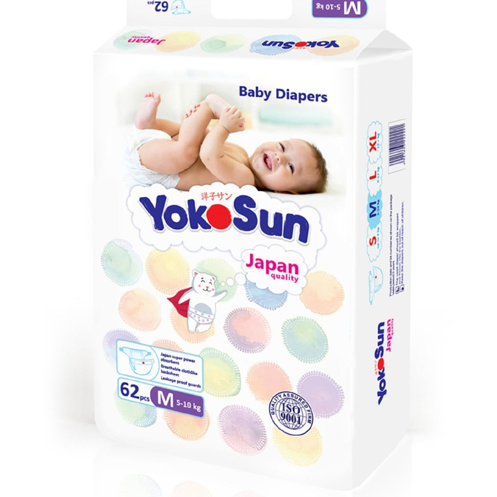 Подгузники детские Yokosun M62 также предназначены для малышей с весом от 5 до 10 кг и представлены в упаковке с 62 штуками. Они обладают надежной защитой и комфортом благодаря мягкому материалу и удобной посадке. Состав подгузников учитывает безопасность и комфорт детей.