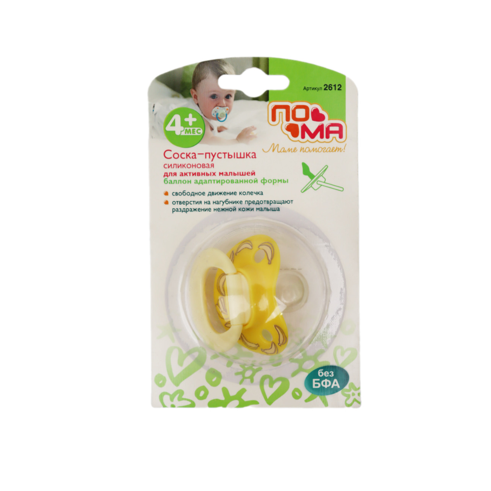 Соска пустышка Пома силиконовая предназначена для детей старше 4 месяцев. Она выполнена из безопасного силикона и имеет адаптированный баллон для комфортного использования. Состав соски соответствует всем стандартам качества и безопасности для малышей.