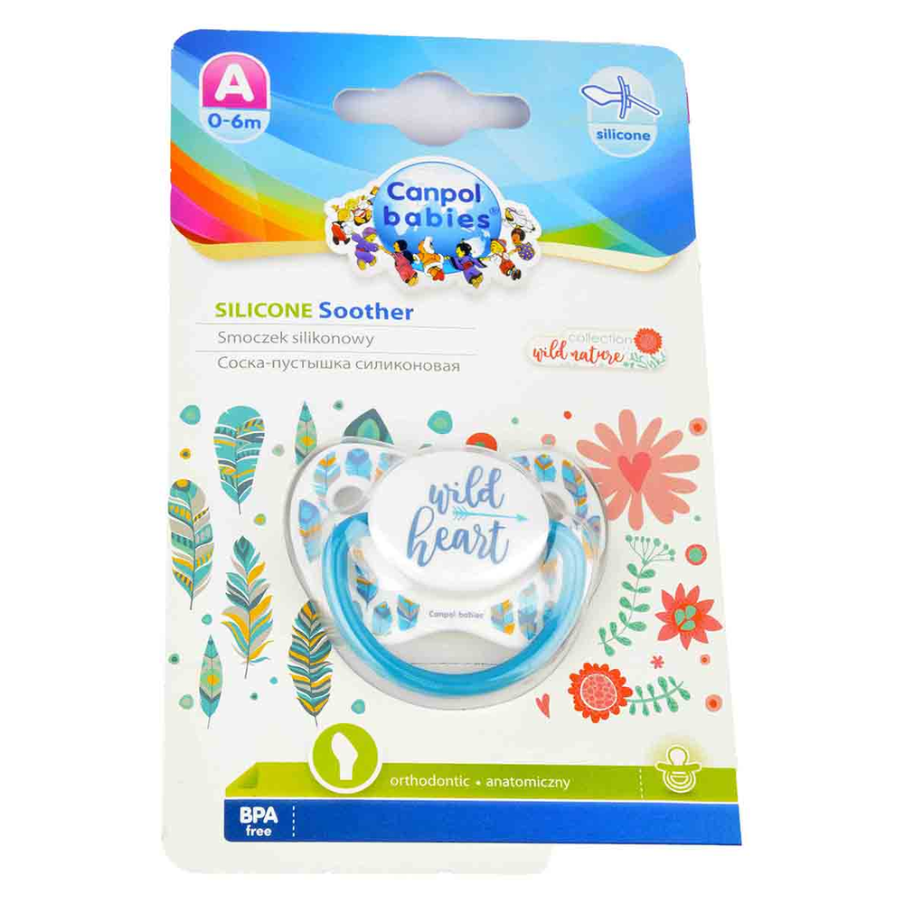 Пустышка Canpol Babies анатомическая силиконовая предназначена для детей от до 6 месяцев. Она имеет яркий бирюзовый цвет и украшена мотивами дикой природы. Состав пустышки безопасен для ребенка и выполнен из качественного силикона.