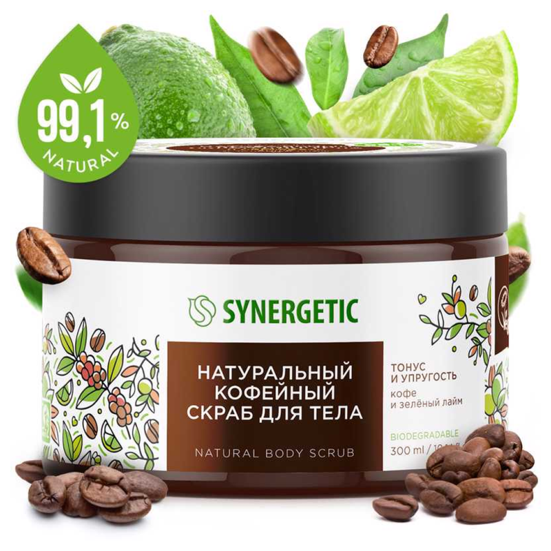 Ощутите мощный заряд энергии и свежести с нашим веганским скрабом для тела Synergetic с ароматом кофе и зеленого лайма! Этот уникальный продукт поможет вам освежить кожу, удалить отмершие клетки и придать ей ухоженный вид. Просто нанесите скраб на влажную кожу, массируйте круговыми движениями, затем тщательно смойте водой. Результатом будет гладкая, увлажненная и сияющая кожа. Попробуйте использовать скраб перед нанесением увлажняющего крема для максимального эффекта. Не упустите шанс побаловать себя этим удивительным продуктом!