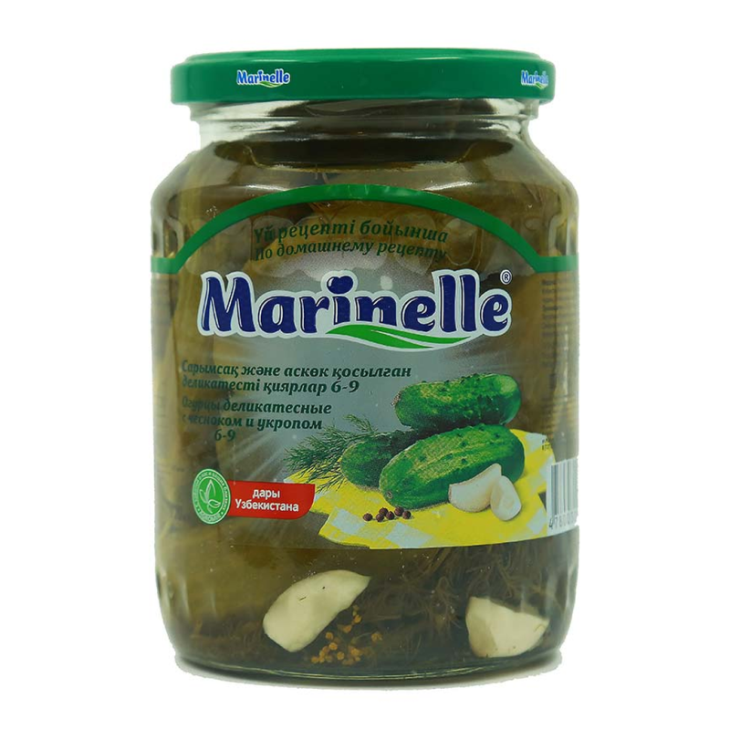 Огурцы Деликатес Чеснок/Укроп 6-9 Marinelle 720 г - это вкусный и ароматный продукт, состоящий из огурцов, чеснока и укропа. Они предназначены для приготовления вкусных закусок и блюд. Они произведены из натуральных ингредиентов и имеют приятный вкус и аромат.