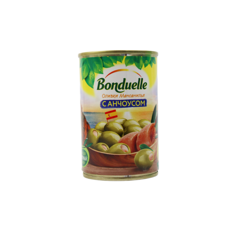 Бондюэль Оливки Мансанилья с анчоусом ж/б 314 мл – это натуральные оливки в соусе из анчоуса, произведенные в Испании. Они имеют приятный аромат и вкус, а также полезные питательные свойства. Состав продукта: оливки, анчоус, масло оливковое, лимонный сок, природные ароматизаторы, природные консерванты.