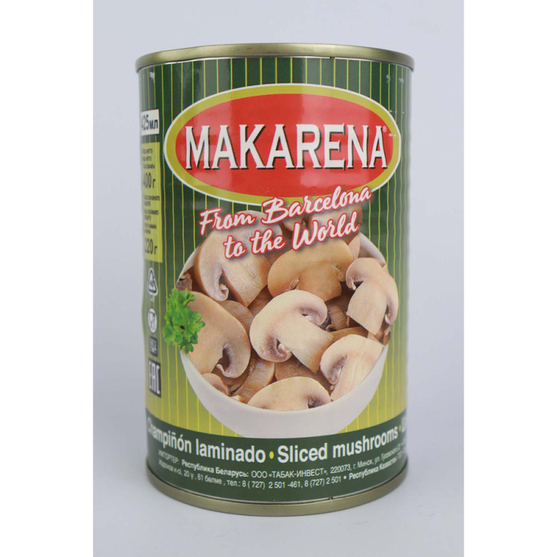 Грибы Makarena резанные в банке по 425 мл - это вкусные и ароматные грибы, произведенные из натуральных ингредиентов. Они содержат масло подсолнечное, лук, морскую соль, перец и другие природные пряности. Грибы Makarena прекрасно подходят для приготовления различных блюд, а также для приготовления салатов и закусок.