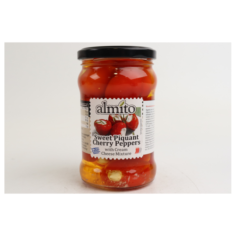 Перец черри Almito Сладкий Пикант состоит из перца черри, приправленного сладким пикантным соусом и крем-сыром. Он идеально подходит для приготовления блюд и добавления вкуса к любой еде. Продукт имеет вес 320 г амм и представлен в удобной стеклянной банке.