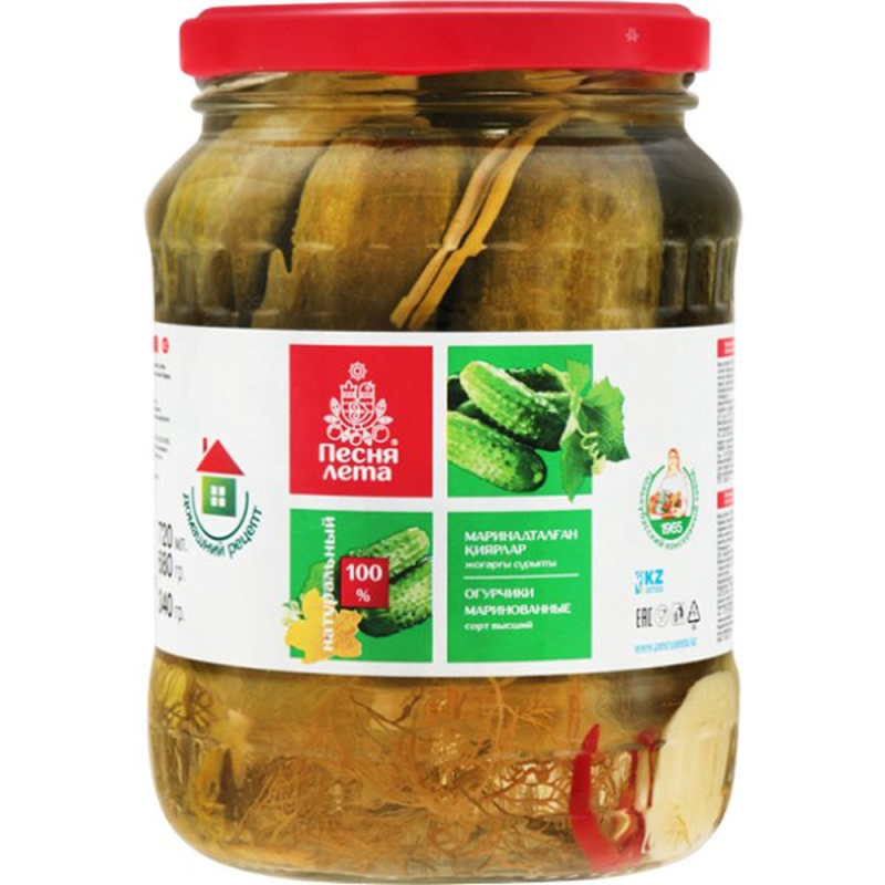 Огурцы Маринованные Песня Лета - это вкусные и ароматные маринованные огурцы, приготовленные по традиционному рецепту. Они имеют приятный вкус и аромат, а также полезные питательные свойства. Состав огурцов Маринованных Песня Лета: огурцы, соль, сахар, лавровый лист, перец черный молотый, лук репчатый, оливковое масло, винный уксус. Вес одной упаковки составляет 720 г