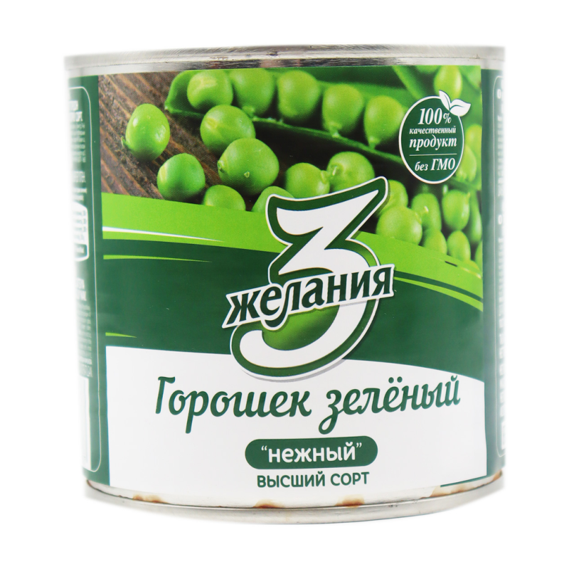 Зеленый горошек 3 Желания - нежный и сочный консервированный продукт, который станет отличным дополнением к вашему столу. Собранный на пике свежести, он сохраняет все свои полезные свойства и натуральный вкус. Используйте его для приготовления салатов, гарниров, супов или добавьте в пасту для более насыщенного вкуса. Попробуйте приготовить вкусный горошковый пюре с добавлением масла и специй. Приобретите зеленый горошек 3 Желания прямо сейчас и наслаждайтесь его нежным вкусом!