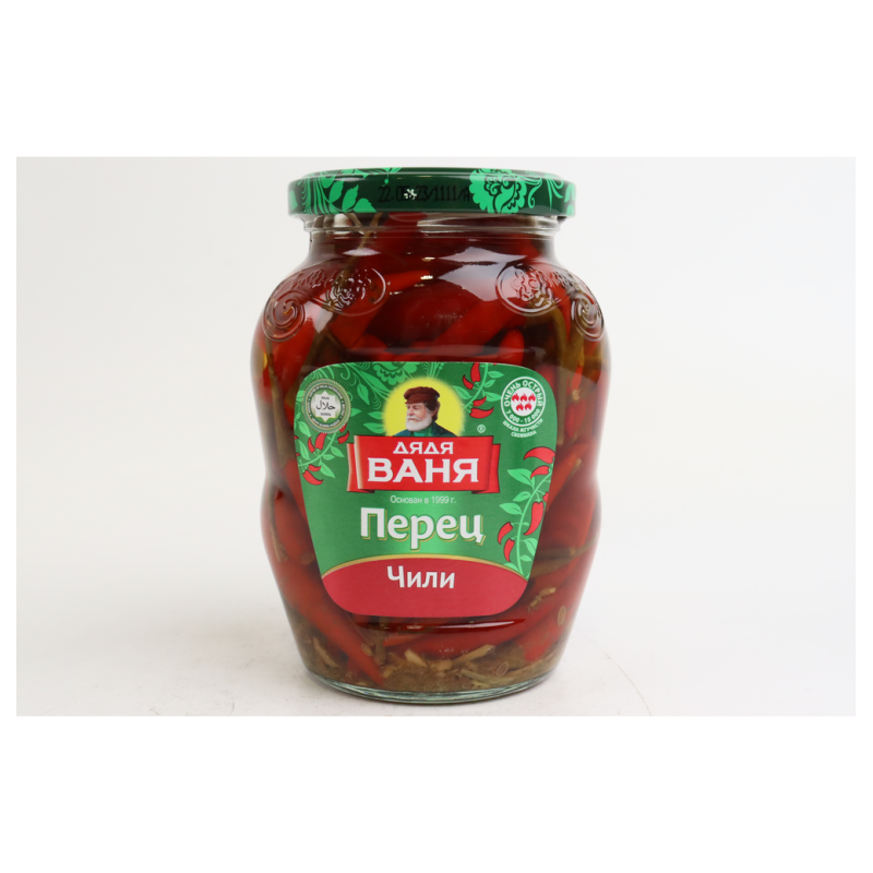 Перец Чили Дядя Ваня Марин - это продукт для приготовления блюд из натуральных продуктов. Он состоит из перца чили, маринованных овощей, приправ и специй. Он имеет приятный аромат и острый вкус, идеально подходит для приготовления различных блюд. Он представлен в банке объемом 350 мл