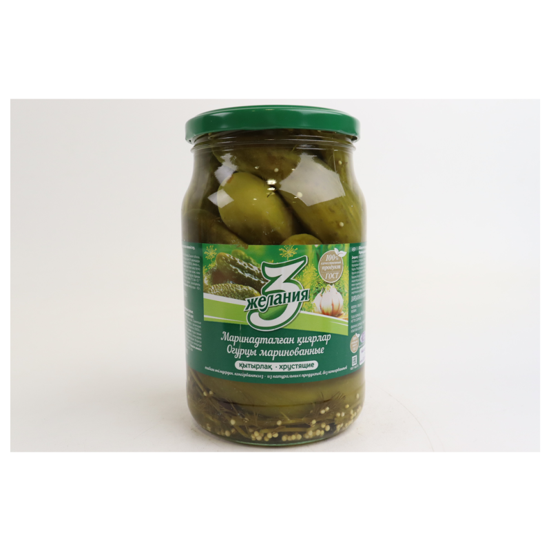 Маринованные огурцы «3 Желания» в стеклянной банке объемом 720 мл - это вкусное и освежающее лакомство, которое прекрасно подходит как самостоятельное блюдо, так и добавление к различным закускам и салатам. Огурцы насыщены ароматными специями и маринадом, который делает их сочными и вкусными. Они идеально подходят для закуски к любому приему пищи и обязательно порадуют ваш вкус.