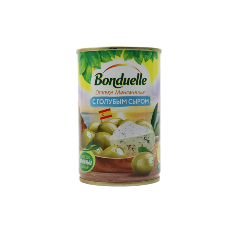 Бондюэль Оливки Мансанилья с голубым сыром Ж/Б 314 мл – это вкусные и ароматные оливки в сочетании с голубым сыром. Они произведены из натуральных ингредиентов и имеют приятный вкус. Состав оливок включает в себя оливки, голубой сыр, перец, лук, масло оливковое, лимонный сок, приправы и соль.