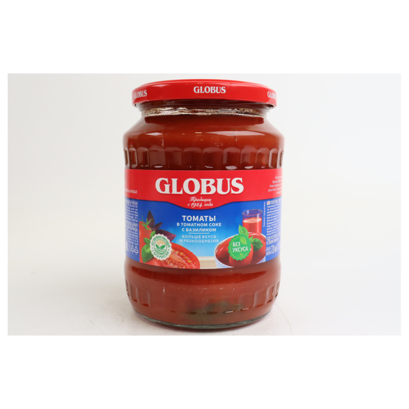 Globus Томаты в собственном соку 720 мл - это натуральный продукт без добавления консервантов. Он содержит в себе натуральные томаты, проращенные на природе и приготовленные в собственном соку. Состав продукта включает в себя томаты, соль, уксус, перец и другие природные ингредиенты.