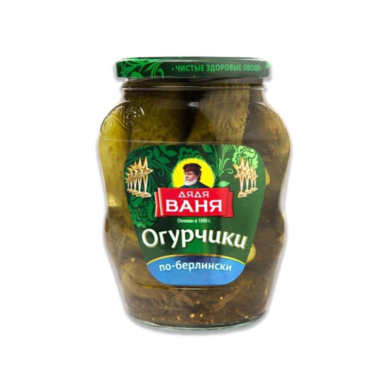 Огурцы Дядя Ваня По-Берлински. В основу рецепта этих вкусных хрустящих огурчиков лег особенный рассол - в нем содержится не только классический укроп, но также уксус, чеснок и семена горчицы. Рассол усиливает и раскрывает натуральный вкус огурцов, наделяя их особой пикантной ноткой. Огурцы «По-берлински» от «Дяди Вани» - это превосходный компонент салатов и самостоятельная закуска.