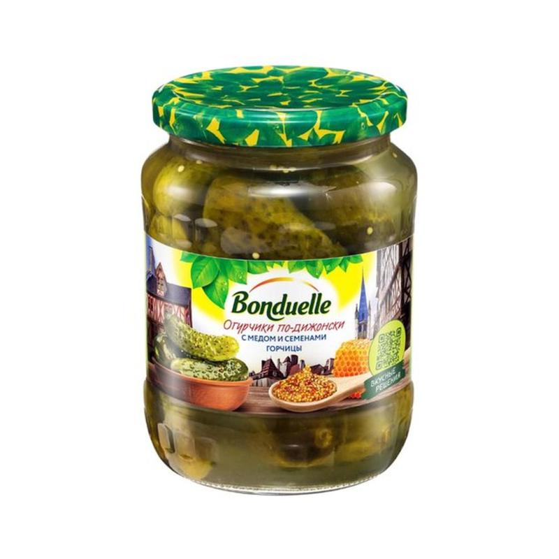 Бондюэль Огурцы По-Дижонски - это вкусный и ароматный освежающий напиток из огурцов, соли и сахара. Он идеально подходит для летнего отдыха и праздников. Состав напитка: огурцы, соль, сахар, вода. Объем банки 720 мл