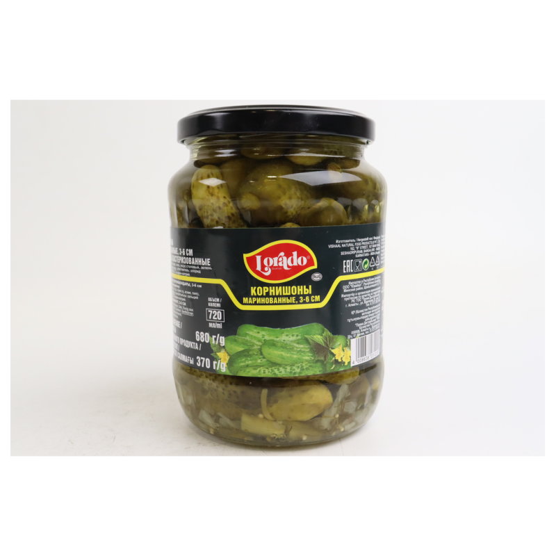 Маринованные корнишоны Lorado в упаковке объемом 720 миллилитров - это отличное дополнение к вашему столу, которое прекрасно сочетается с различными блюдами и закусками. Сочные и хрустящие корнишоны, замаринованные в ароматных специях, придают вашему обеду или ужину особый вкус и аромат. Упаковка объемом 720 миллилитров обеспечивает удобство использования и позволяет наслаждаться корнишонами в течение длительного времени.