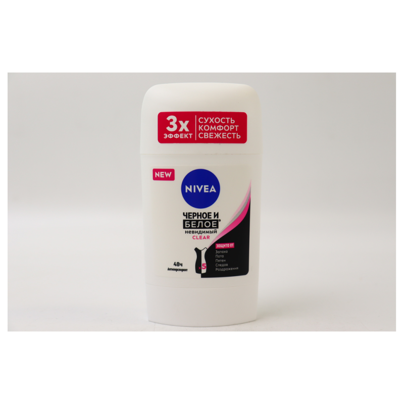 Антиперспирант Nivea Черное/Белое Невидимый Clear объемом 50 мл - это идеальное решение для тех, кто ищет надежную защиту от пота и неприятного запаха, при этом не оставляя следов на одежде. Его прозрачная формула обеспечивает невидимый эффект, что делает его идеальным выбором для повседневного использования. С этим антиперспирантом вы будете чувствовать себя свежими и уверенными в любой ситуации, сохраняя чистоту и свежесть вашей одежды.