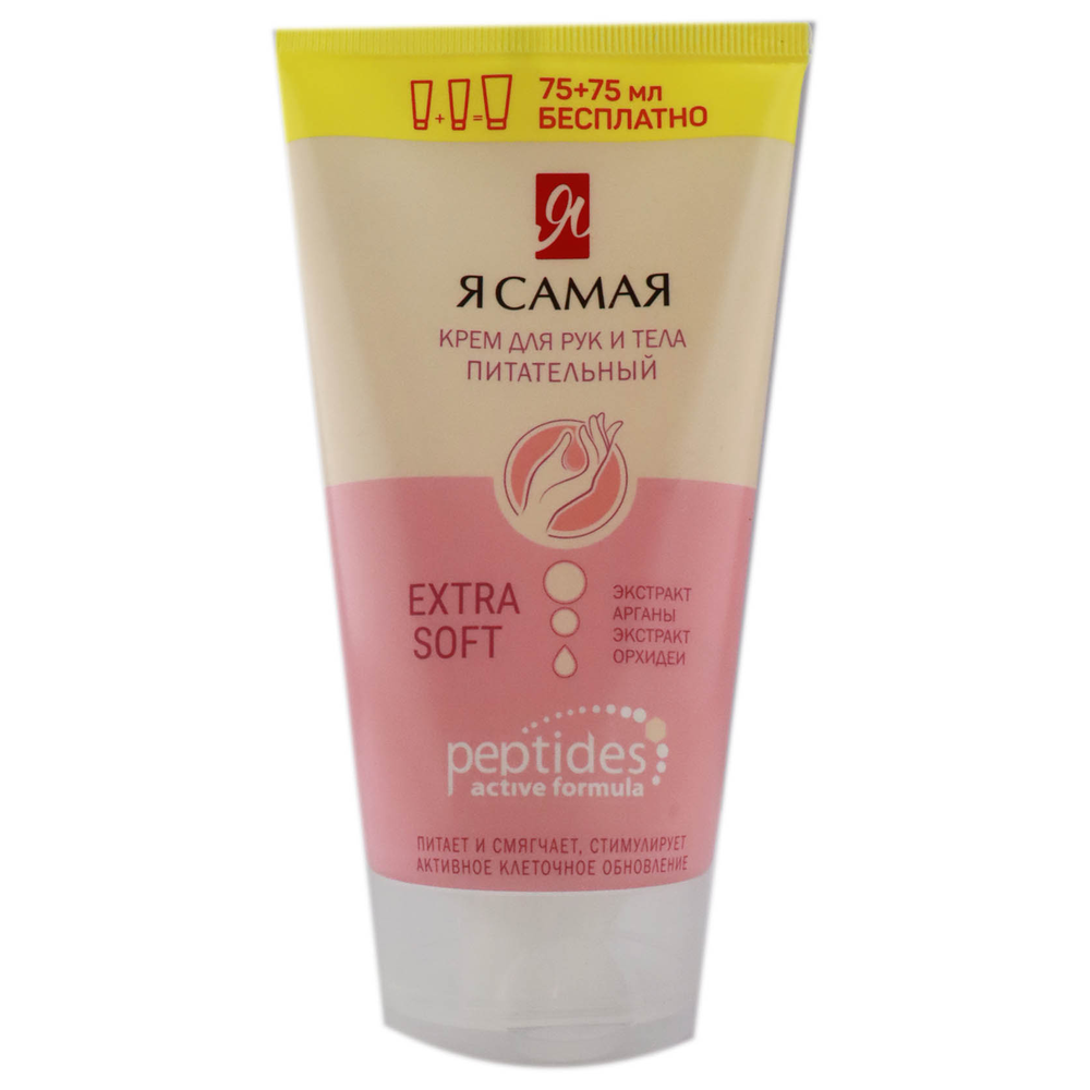 Погрузитесь в мир роскошного ухода с кремом для рук и тела «Я Самая Peptides» . Этот нежный крем обогащен питательными компонентами, которые помогут вашей коже оставаться увлажненной и ухоженной в течение всего дня. Сочетание пептидов и других активных ингредиентов помогает улучшить упругость кожи и сделать ее более гладкой. Этот универсальный крем идеально подходит для ухода за кожей рук и тела. Вы можете использовать его после душа, чтобы увлажнить кожу, или в любое другое время дня, чтобы освежить и смягчить кожу рук. Попробуйте нанести крем на руки перед сном, чтобы проснуться с невероятно мягкой и ухоженной кожей. Не упустите возможность попробовать этот удивительный крем для рук и тела. Добавьте его в свою ежедневную рутину ухода за кожей и наслаждайтесь результатом.
