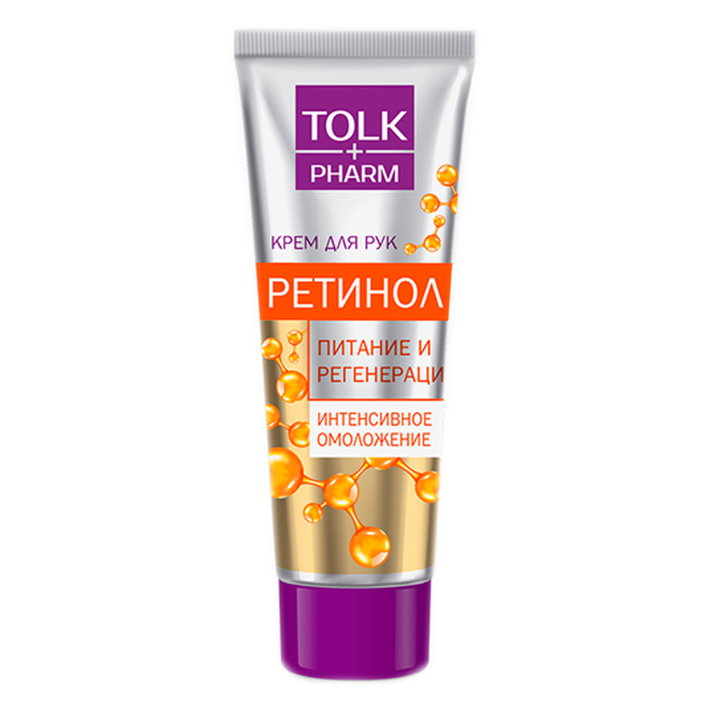Крем для рук «Tolk Pharm Ретинол» объемом 75 миллилитров - это косметический продукт, разработанный для увлажнения и ухода за кожей рук. Ретинол (витамин A) может способствовать улучшению состояния кожи и уменьшению признаков старения. Этот крем предназначен для тщательного увлажнения и питания кожи рук, чтобы они оставались мягкими и здоровыми.