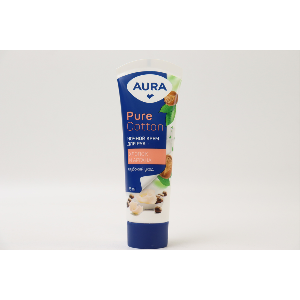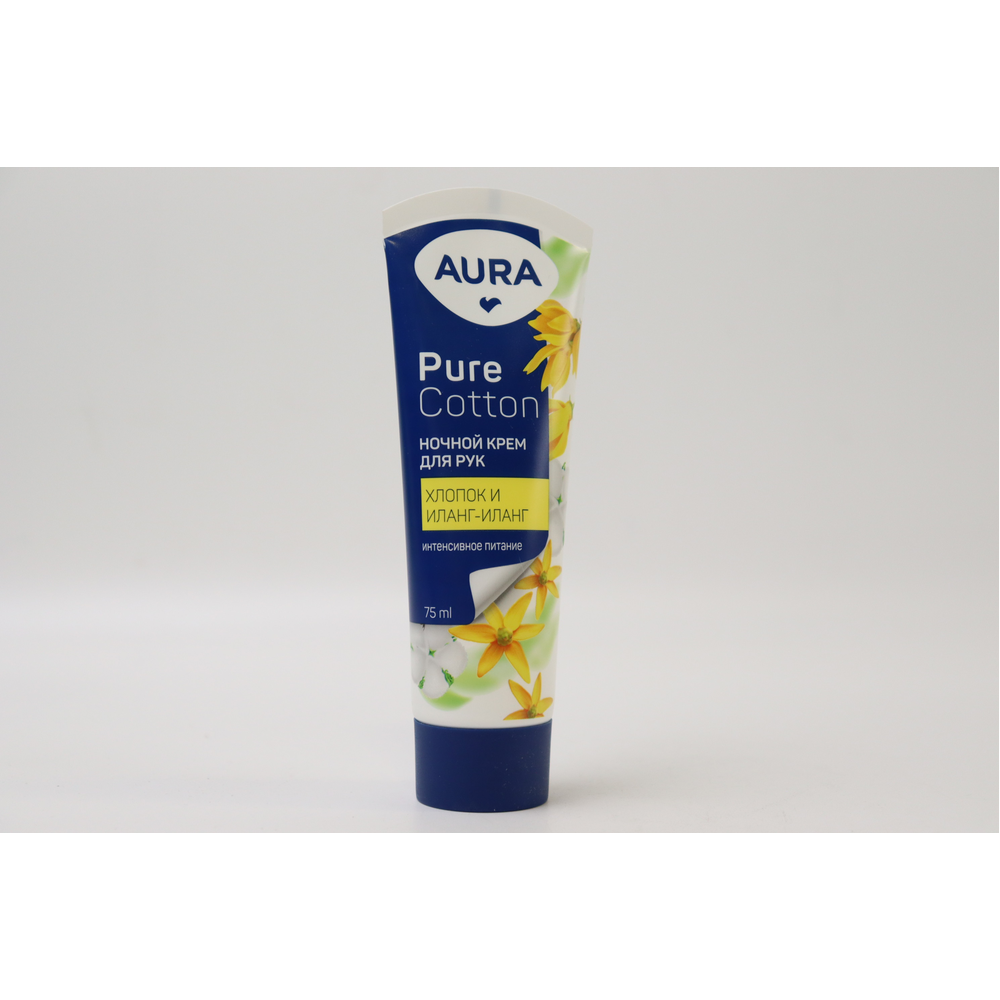 Крем для рук Aura Pure Cotton ночной уход, объемом 75 мл, специально разработан для интенсивного увлажнения и питания кожи рук во время сна. Обогащенный экстрактами хлопка, он помогает восстанавливать и смягчать кожу, предотвращая ее сухость и шелушение. Быстро впитывается, не оставляя ощущения жирности, и обладает нежным ароматом. Регулярное применение этого крема помогает сделать кожу рук мягкой, увлажненной и здоровой.
